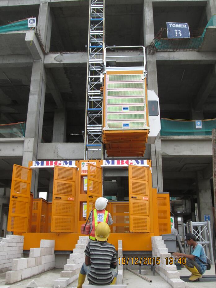 印尼雅加達(dá)的施工工地,該項(xiàng)目采用我公司生產(chǎn)的SC-K型領(lǐng)航者施工升降機(jī)