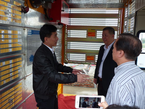 考察完車間、產(chǎn)線,領(lǐng)導(dǎo)們一行來(lái)到產(chǎn)品展示區(qū),何區(qū)長(zhǎng)走進(jìn)吊籠,對(duì)產(chǎn)品有關(guān)部件進(jìn)行的細(xì)致的詢問(wèn),并對(duì)安全生產(chǎn)進(jìn)行了著重強(qiáng)調(diào)。