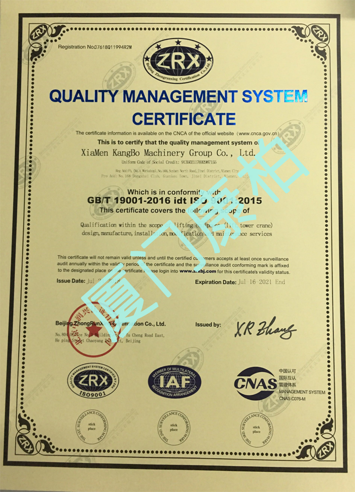 質(zhì)量管理體系認(rèn)證證書(英文)
